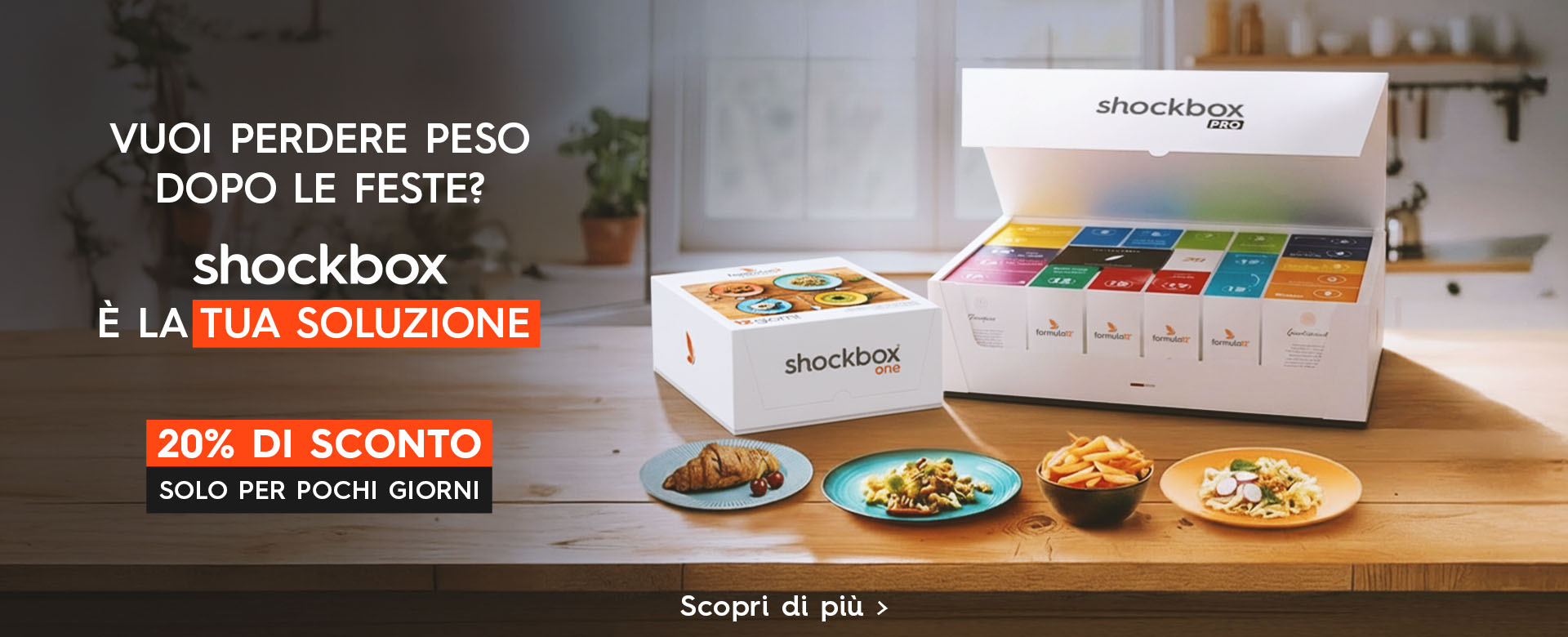 Il Team di Nutrizionisti ricerca e seleziona con cura alimenti di qualità per offrirti sempre il meglio, inoltre, terminato Shockbox, è a tua disposizione, per un anno intero, per fornirti consigli alimentari personalizzati per aiutarti a mantenere o migliorare i risultati raggiunti.