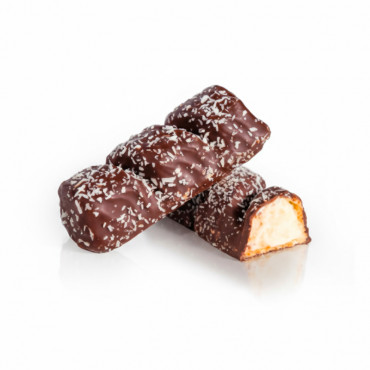 Confezione da 12 tris proteici dark con crema al cioccolato bianco e cocco.