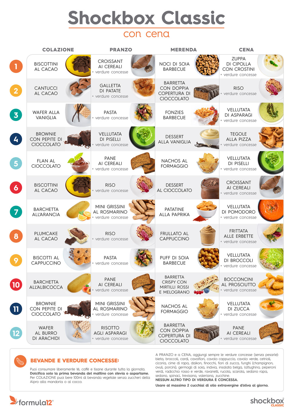 Shockbox One è la soluzione alimentare di 12 giorni per perdere peso velocemente. Tutti i pasti della giornata sono compresi in un menù completamente personalizzabile: colazione, pranzo, merende del pomeriggio, spuntini di metà mattinata e cene opzionali.