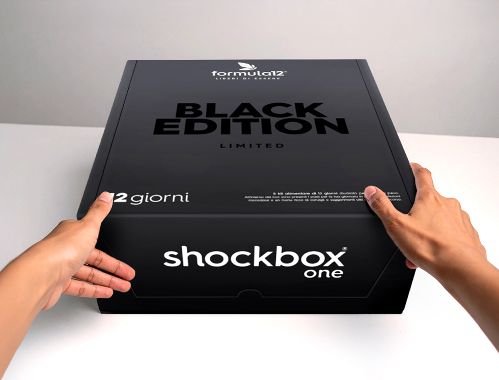 Shockbox One Black è la soluzione alimentare di 12 giorni completa di tutti i pasti della giornata, pensata per chi desidera perdere peso in modo equilibrato, pratico e gustoso.