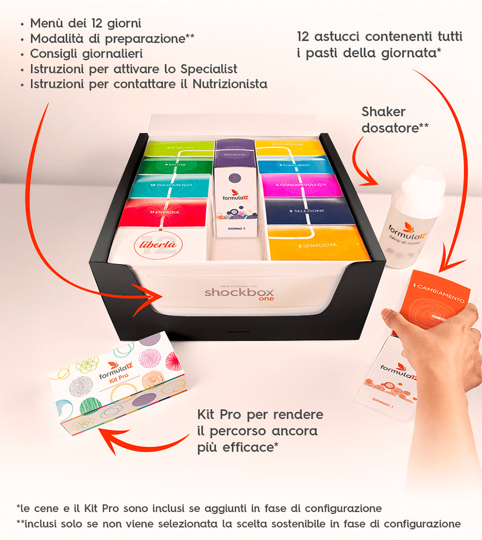 Durante il percorso con Shockbox One Black non si è mai soli. È disponibile il servizio Specialist che ti seguirà passo dopo passo ed è attivo tutti i giorni dalle 9.00 alle 22.00. Il servizio si attiva scrivendo il proprio nome, cognome e la data di inizio del percorso al numero WhatsApp presente sul menù del prodotto. Per qualsiasi dubbio scrivi allo Specialist, sarà a tua disposizione per fornirti tutto il supporto e sostegno di cui hai bisogno.