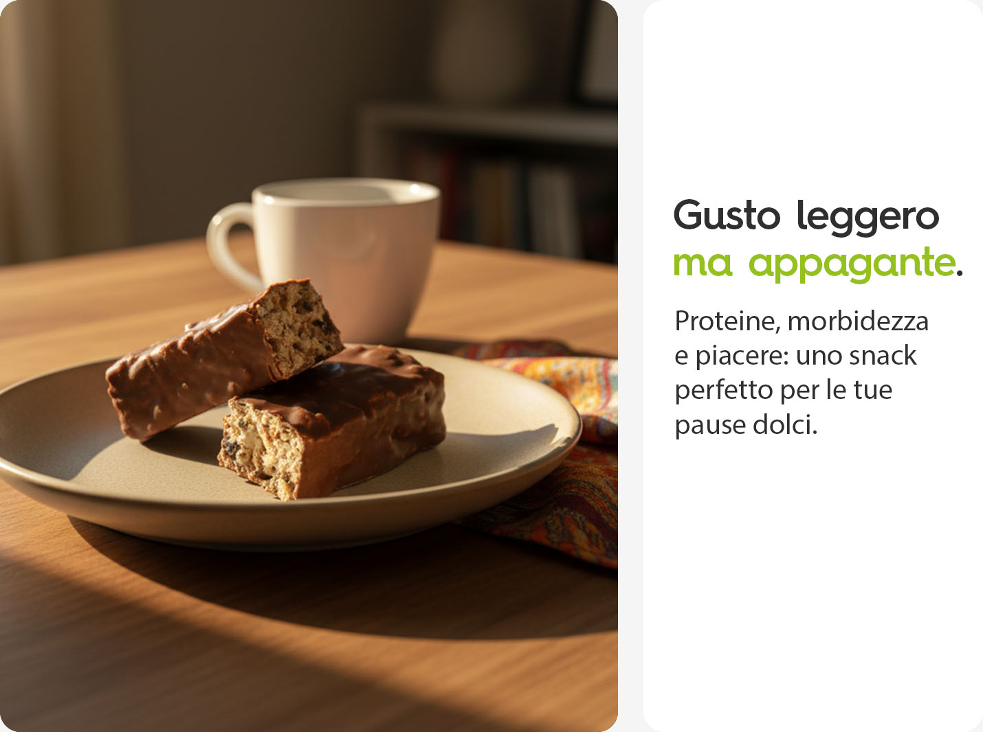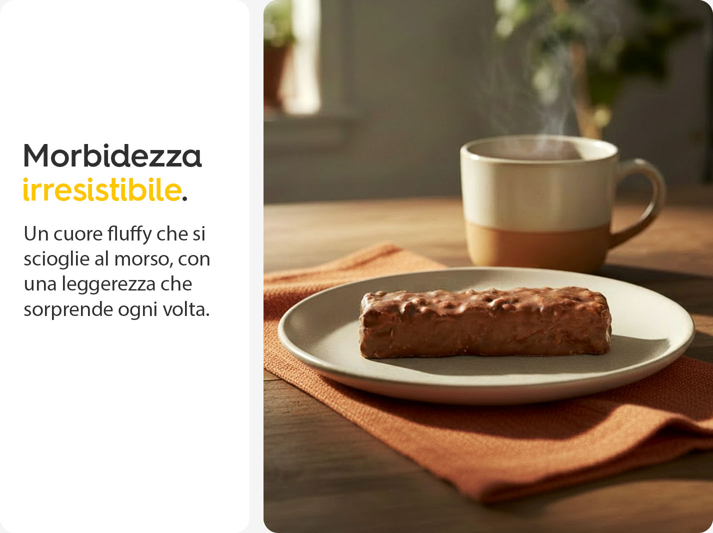 Un cuore morbido e leggero, avvolto da praline al cioccolato che regalano una croccantezza irresistibile. La barretta proteica fluffy è lo snack perfetto per chi cerca un momento di dolcezza senza rinunciare alla leggerezza. Soffice dentro, golosa fuori: ogni morso è un piccolo piacere.